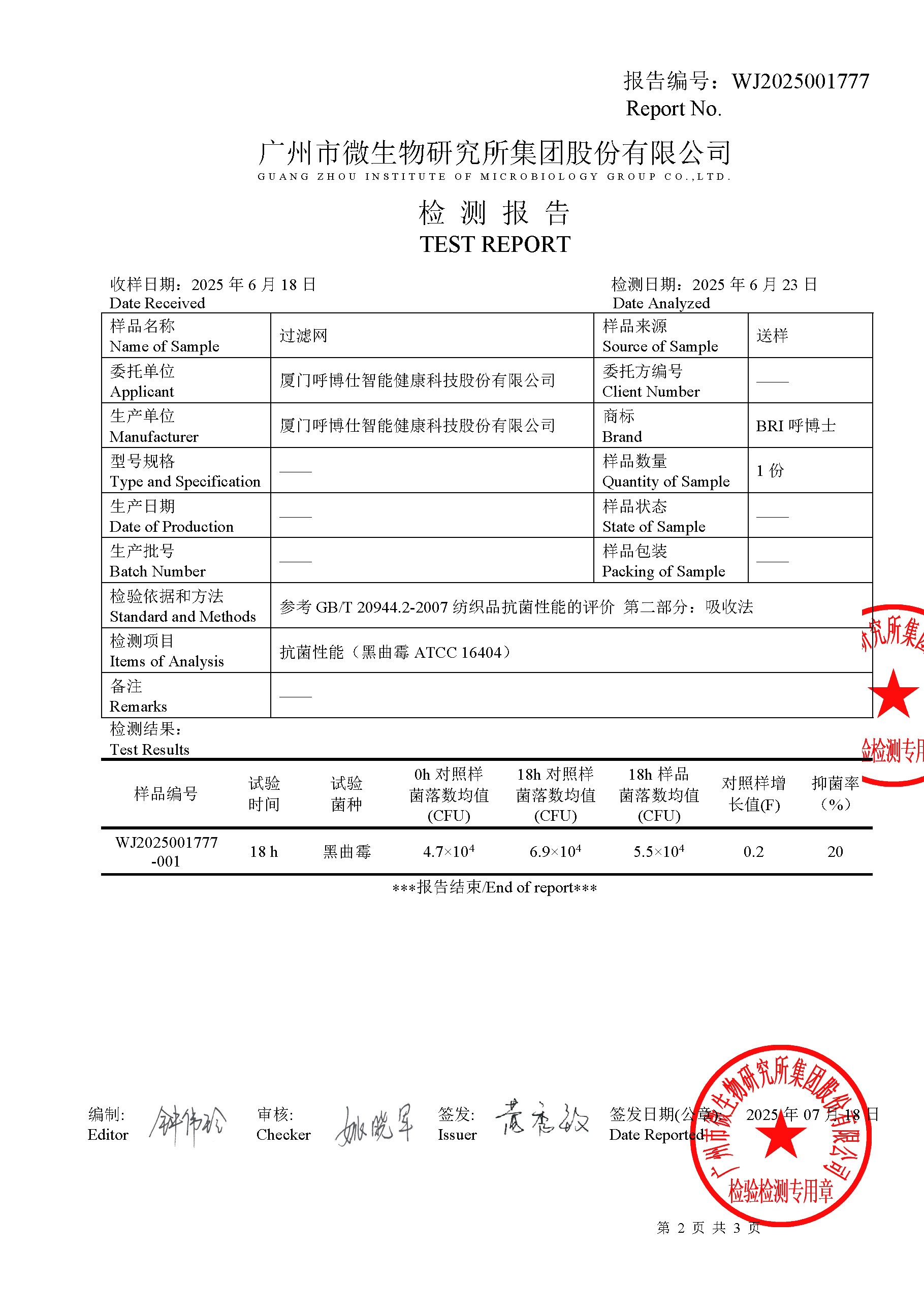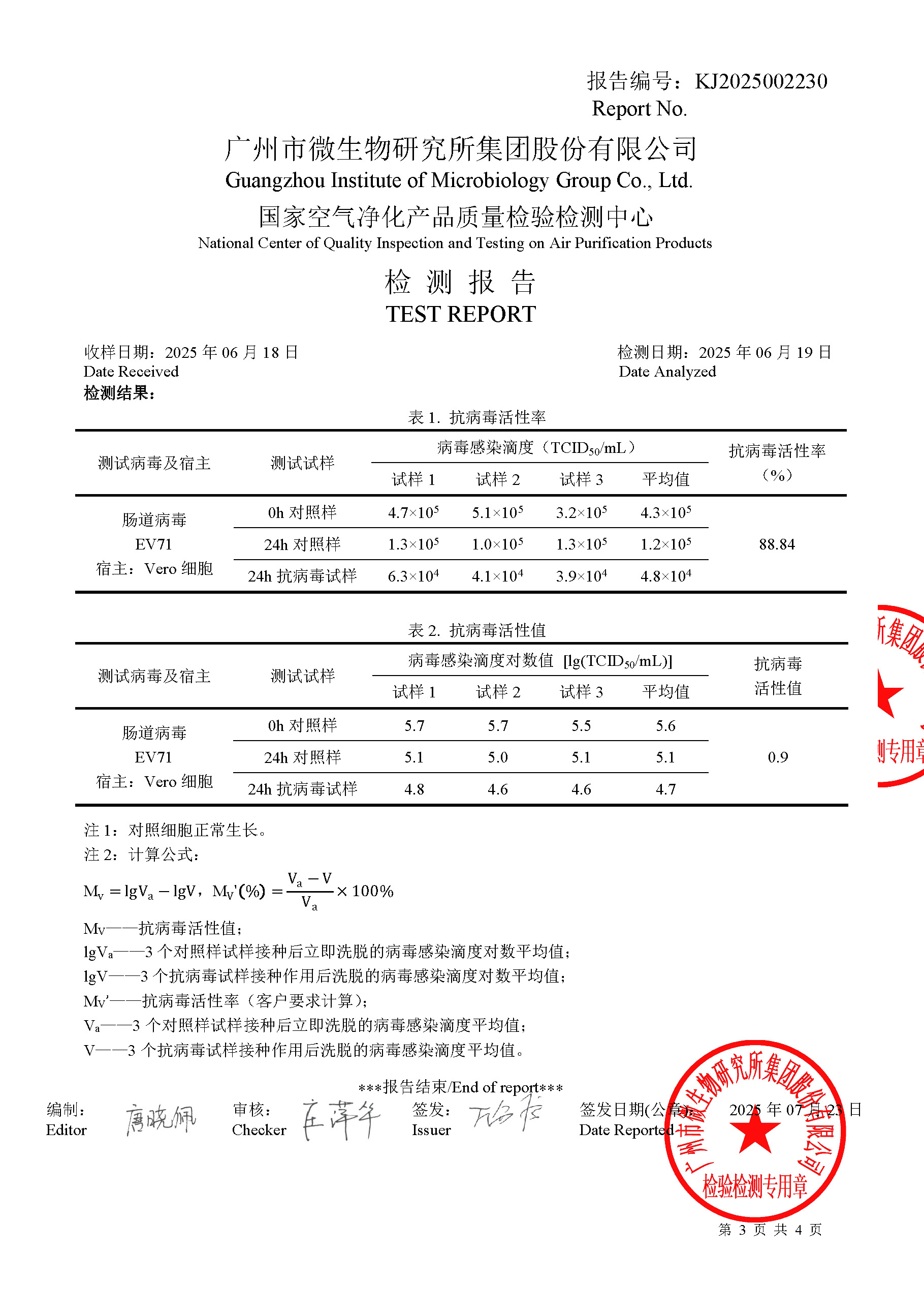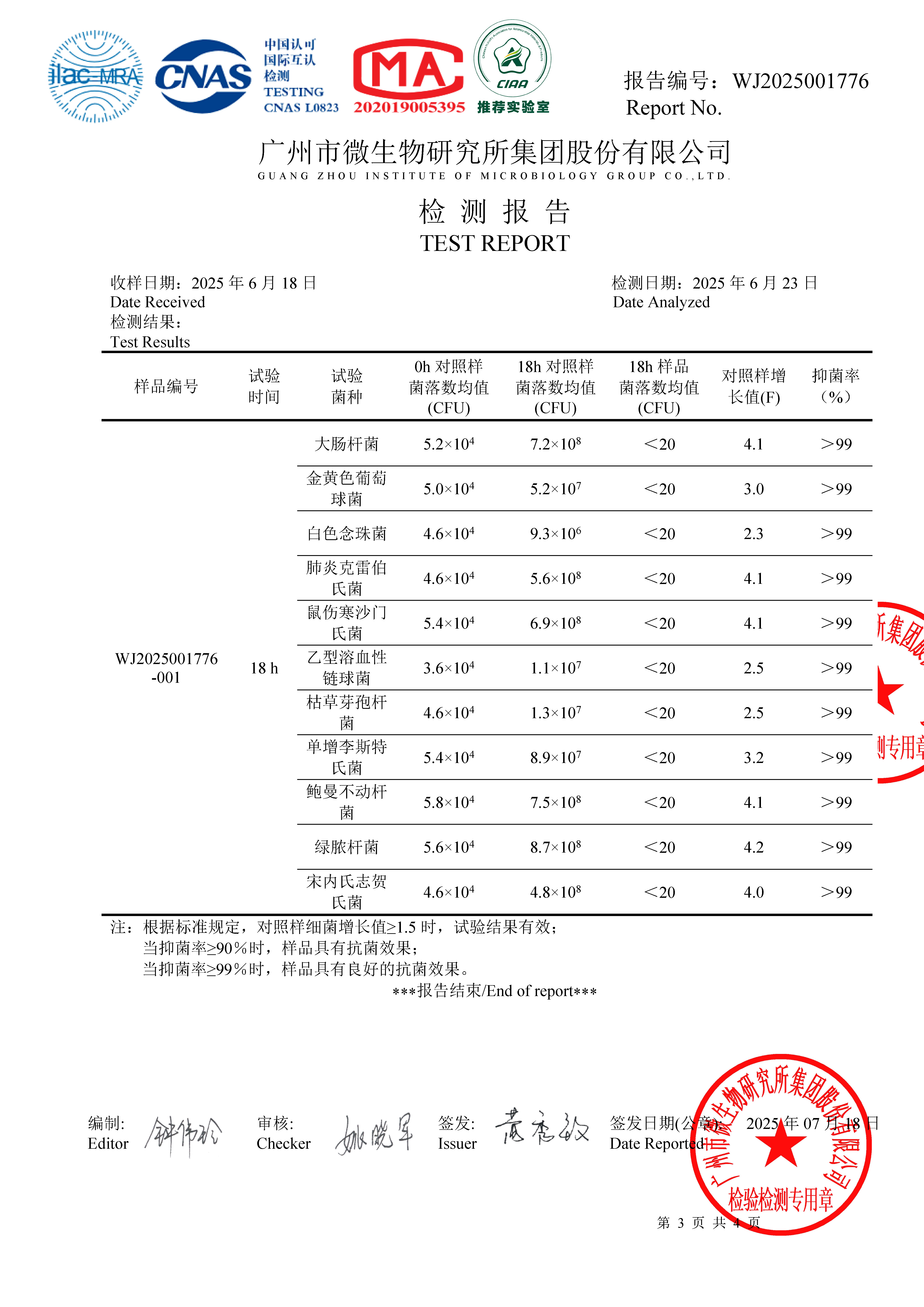 抗菌抗病毒检测报告